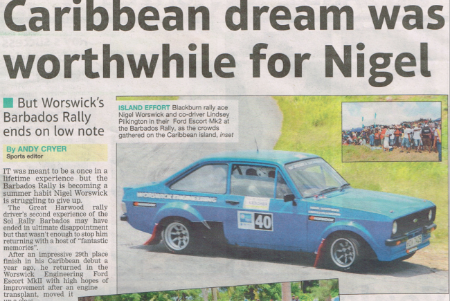 Caribbean dream was worthwhile for Blackburn rally ace Worswick One-page report on Nigel Worswick's second Sol Rally Barbados