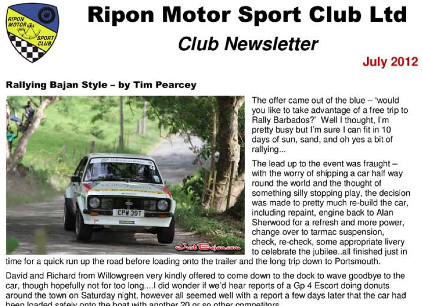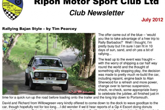 Ripon Motor Sport Club Newsletter, England