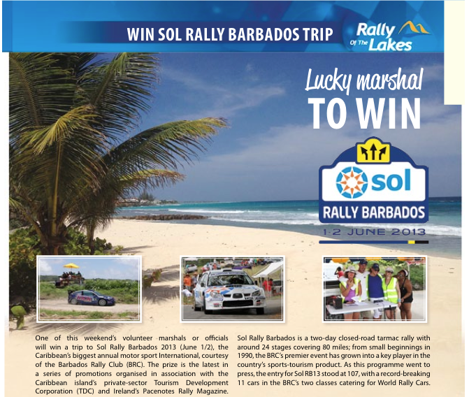 Lucky marshal to win trip to Sol Rally Barbados 2013