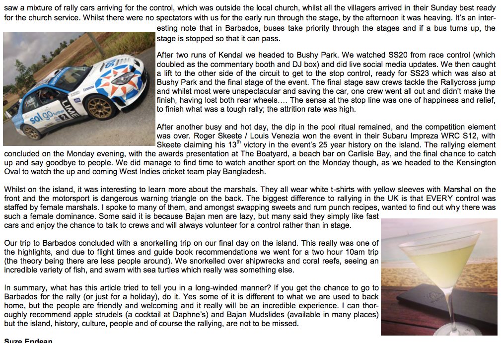 Four-page feature on Matt & Suze Endean's trip to help the media team at Sol RB14