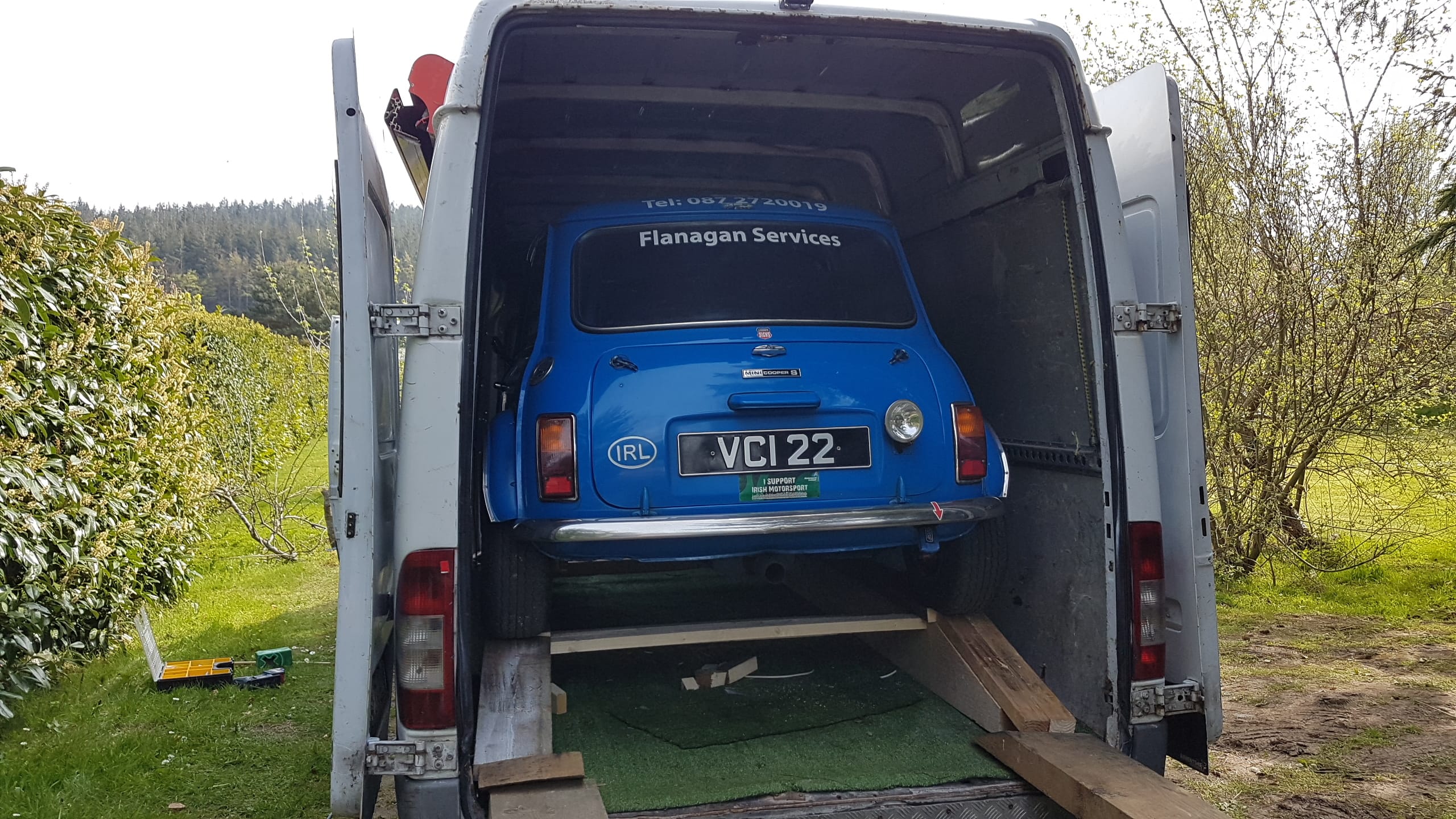 Flanagan’s ‘Irish-Italian’ Job for Mini Cooper S In a plan reminiscent of the iconic film The Italian Job, Ireland’s Kevin Flanagan spent Easter weekend fitting his Mini Cooper S in to a friend’s Mercedes Sprinter van. Why? Let Flanagan explain: “I was wondering how to get the Mini and Pete Gallagher's Evo to Dover; one of the Scottish lads suggested Five Star Vehicle Deliveries in Kilmarnock. It seems that the plan is to put ours and a couple of the Scottish cars on one transporter.”