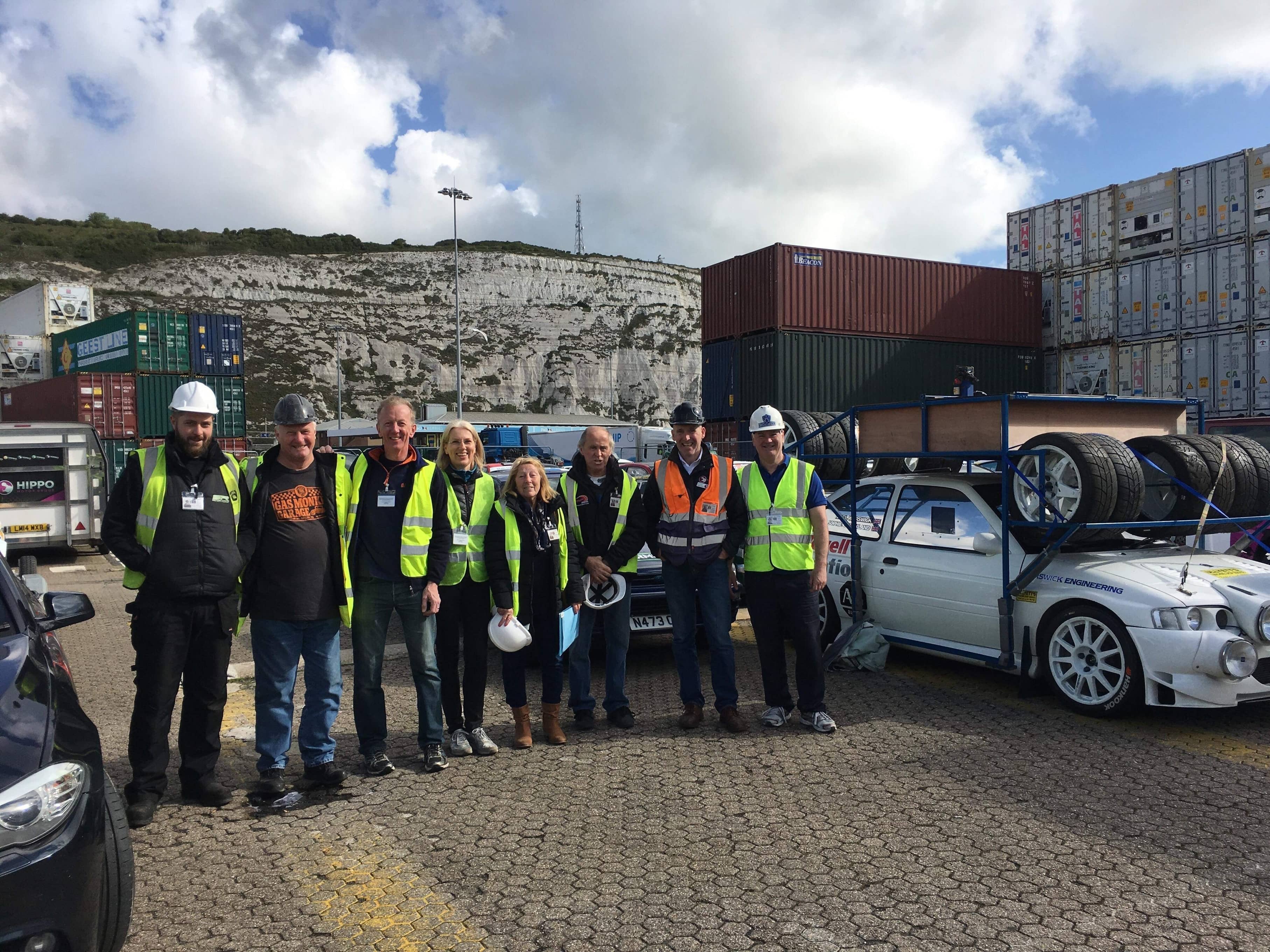 A hailstorm at Dover today did not make loading an easy task for the hardy band of British competitors and their helpers, who loaded more than 30 cars and two service barges. This year’s crew comprised Melissa and Andrew Costin-Hurley, Stephen Gregory, Dick and Kathy Mauger, Hugh Peat, Pete and Scott Rayner, Paul Rees and his co-driver Paul Briggs, Martin Stockdale and nephew Dean, and Nigel Worswick, while Bajan Luke Cozier, currently studying in the UK, was also on hand.