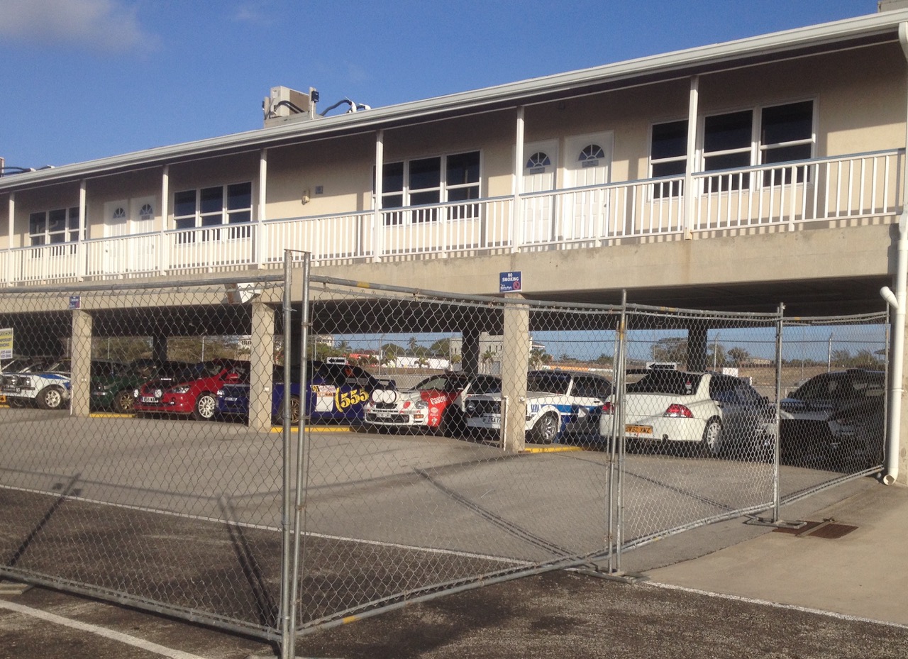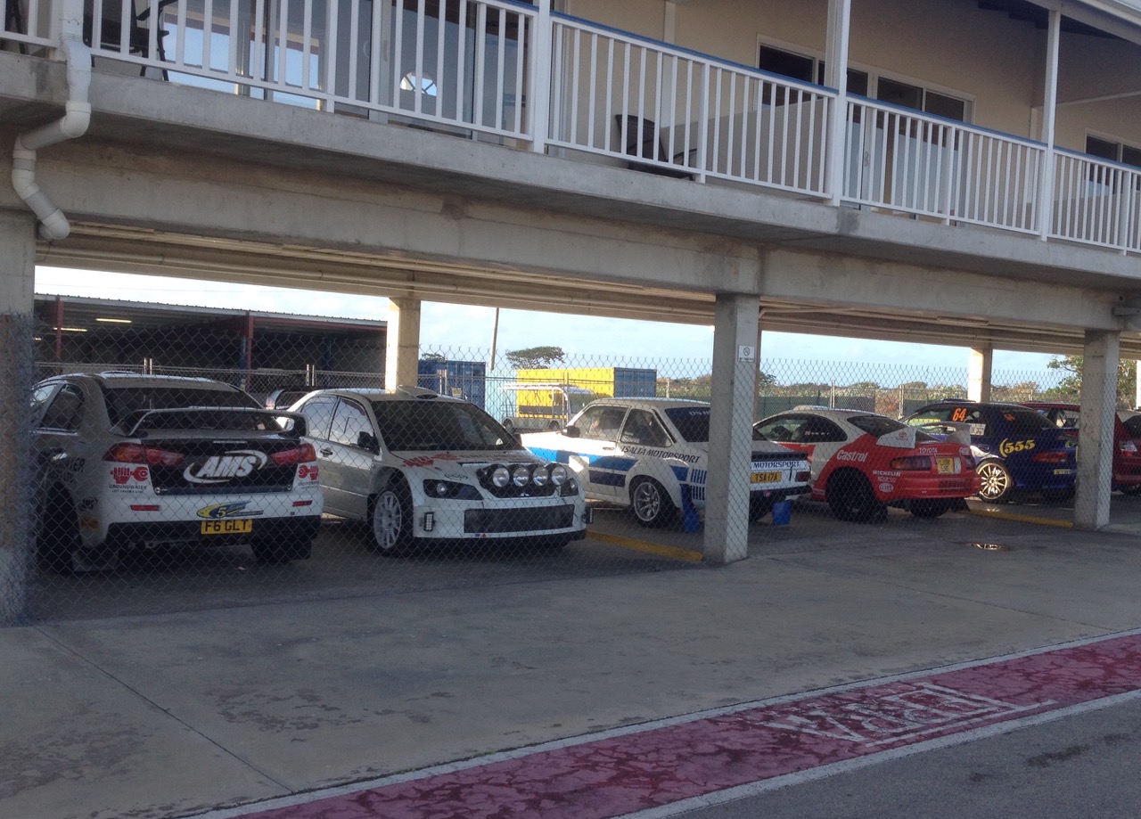 ‘Rally Central’ at Bushy Park Barbados is also now coming alive, as the rally cars and service barges which arrived at the Bridgetown Port on the Geest Line freighter Baltic Klipper last week were transported to the St Philip facility on Monday and Tuesday. As before, the cars are housed in the pit garages, but with new infrastructure and fencing built around them for increased security and as next Friday’s (May 31) three opening stages will pass close by on both sides. The Rally Office is now operating from the circuit office complex.