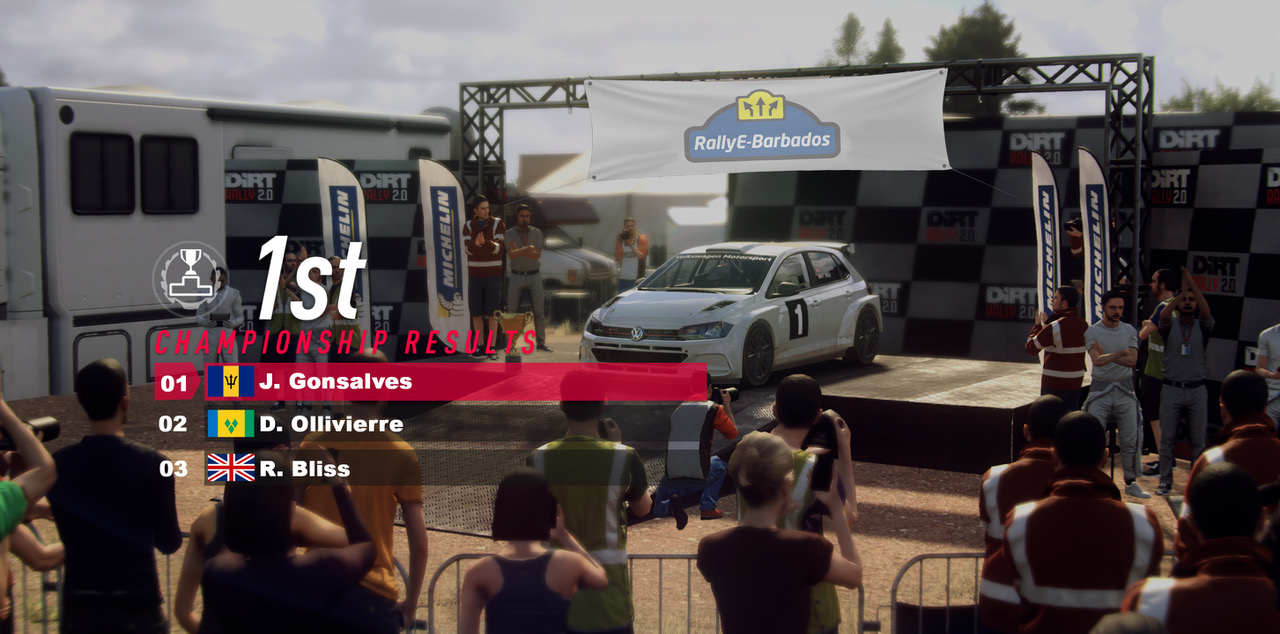 Carib Rally Club Chairman Robert Simmons said: “The event proved to be a lot more successful than the committee and I could have imagined. I would like to thank the Barbados Rally Club for not only recognising and embracing Esports, but also for providing some of the prizes for this event, and the Barbados Motoring Federation, which has expressed an interest in supporting Esports in the future. Also Blades Trophies, Cargo BGI and power stage sponsor Katspraddle, who agreed to back our new venture.”