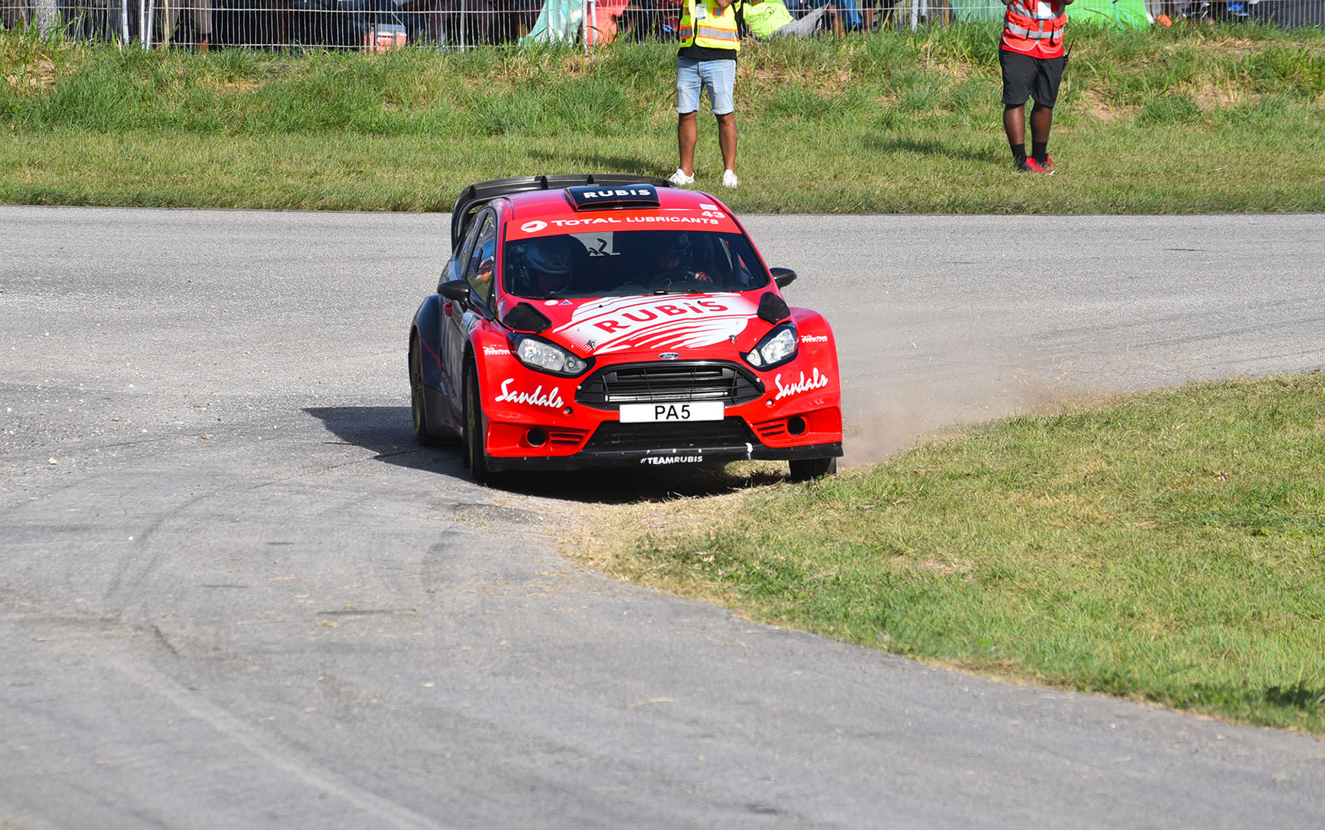 With Jason Cozier in the co-driver’s seat of the Rubis/Sandals/KIG Fiesta WRC, Panton was a little hesitant on his first run, more than 3secs slower than Swann (1:48.20), while Skeete split the two Fiestas in the Sol/CO Williams Sand & Lime/Automotive Art Subaru Impreza WRC S12, seven-tenths slower than Swann (1:45.68).