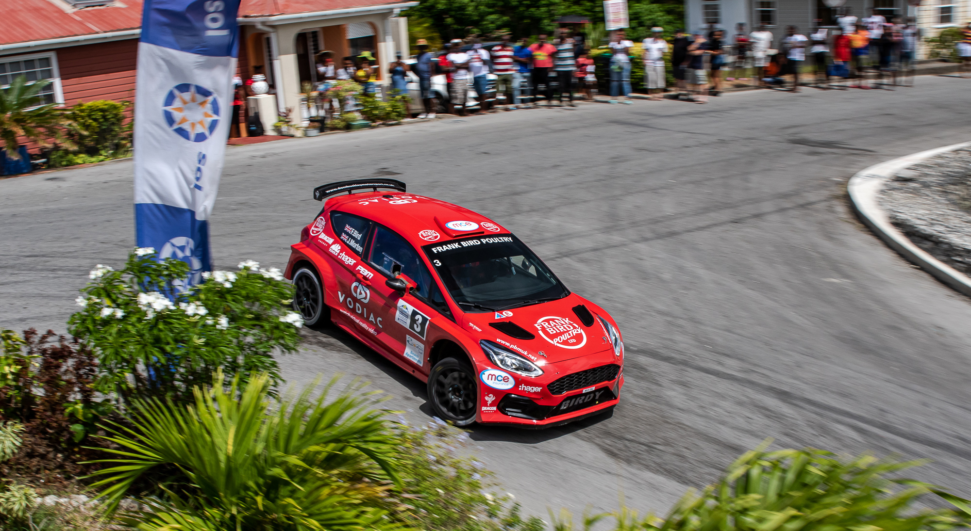 The other British visitor who had looked set for a podium was Frank Bird. Third in his Fiesta Rally2 at KotH, he had been second after Saturday’s first two stages, but a spin on the first Kendal caused by a broken driveshaft dropped him to 17th. He fought back to ninth by bedtime, then won five of Sunday’s stages to move up to second but had earlier been OTL (over time limit) after breaking a wheel in the day’s first Dark Hole stage. An appeal to the Stewards failed yesterday, a major disappointment for the son of double Rally Barbados-winner Paul Bird on his first visit to compete.
